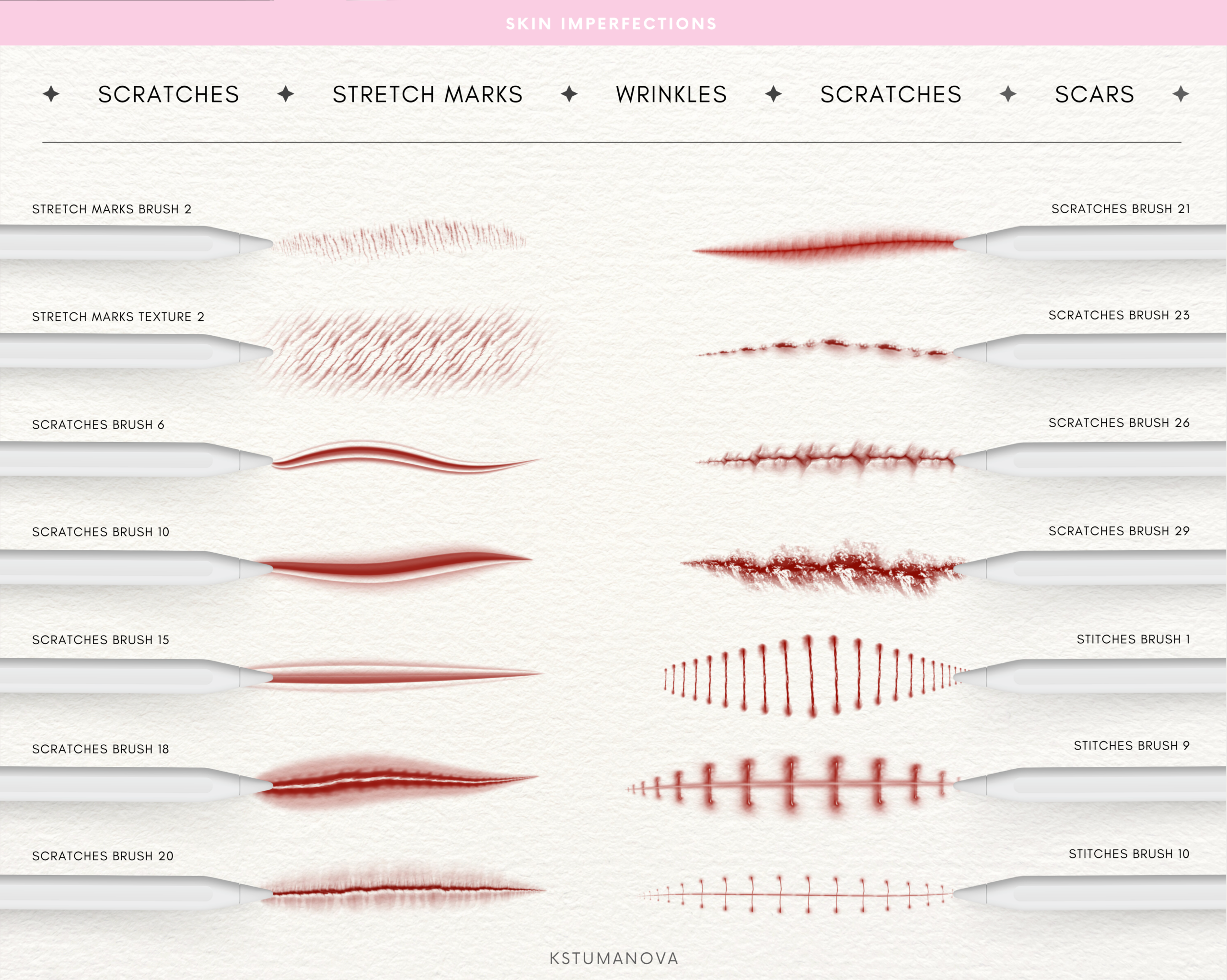 - 20 scratches brushes/stamps