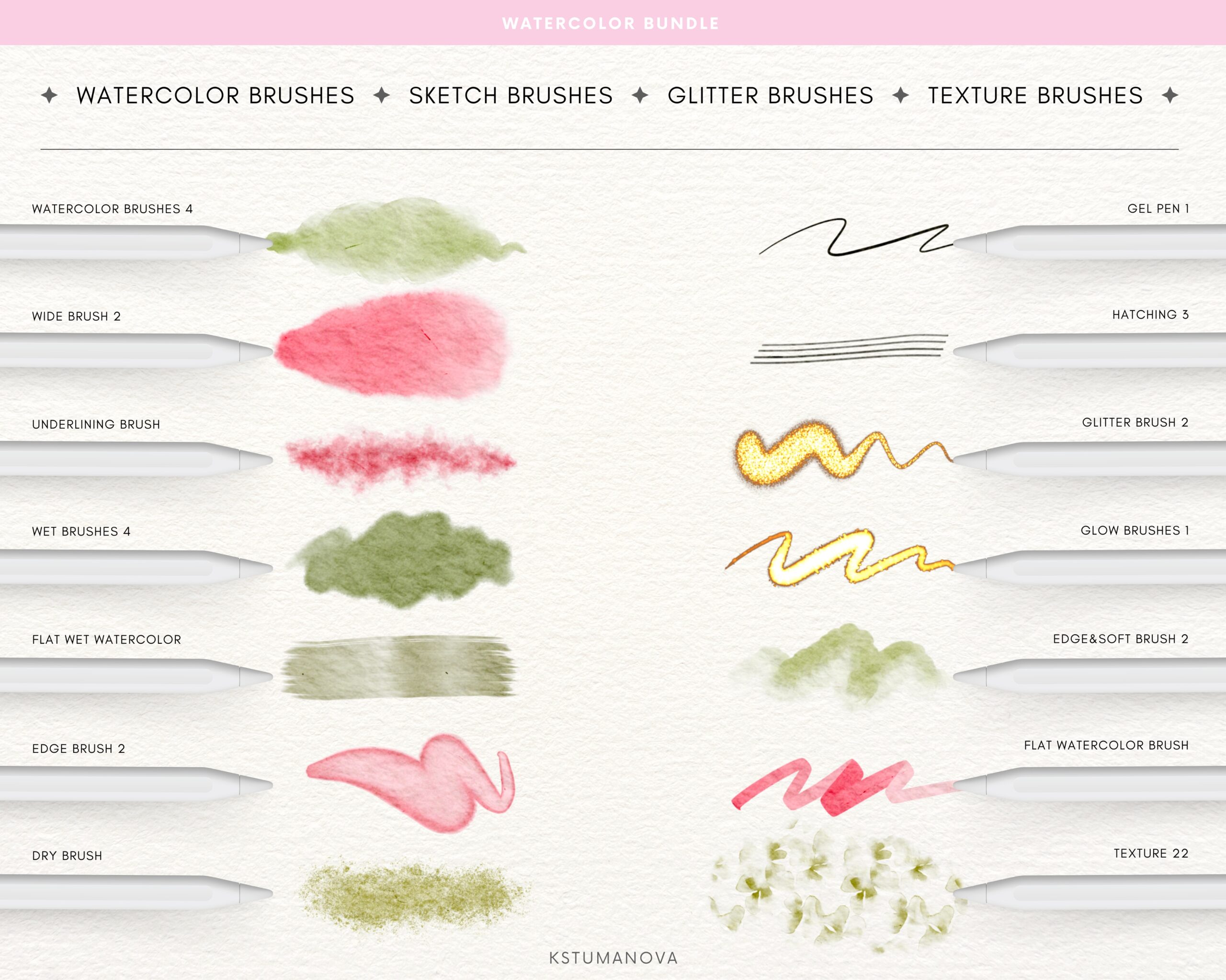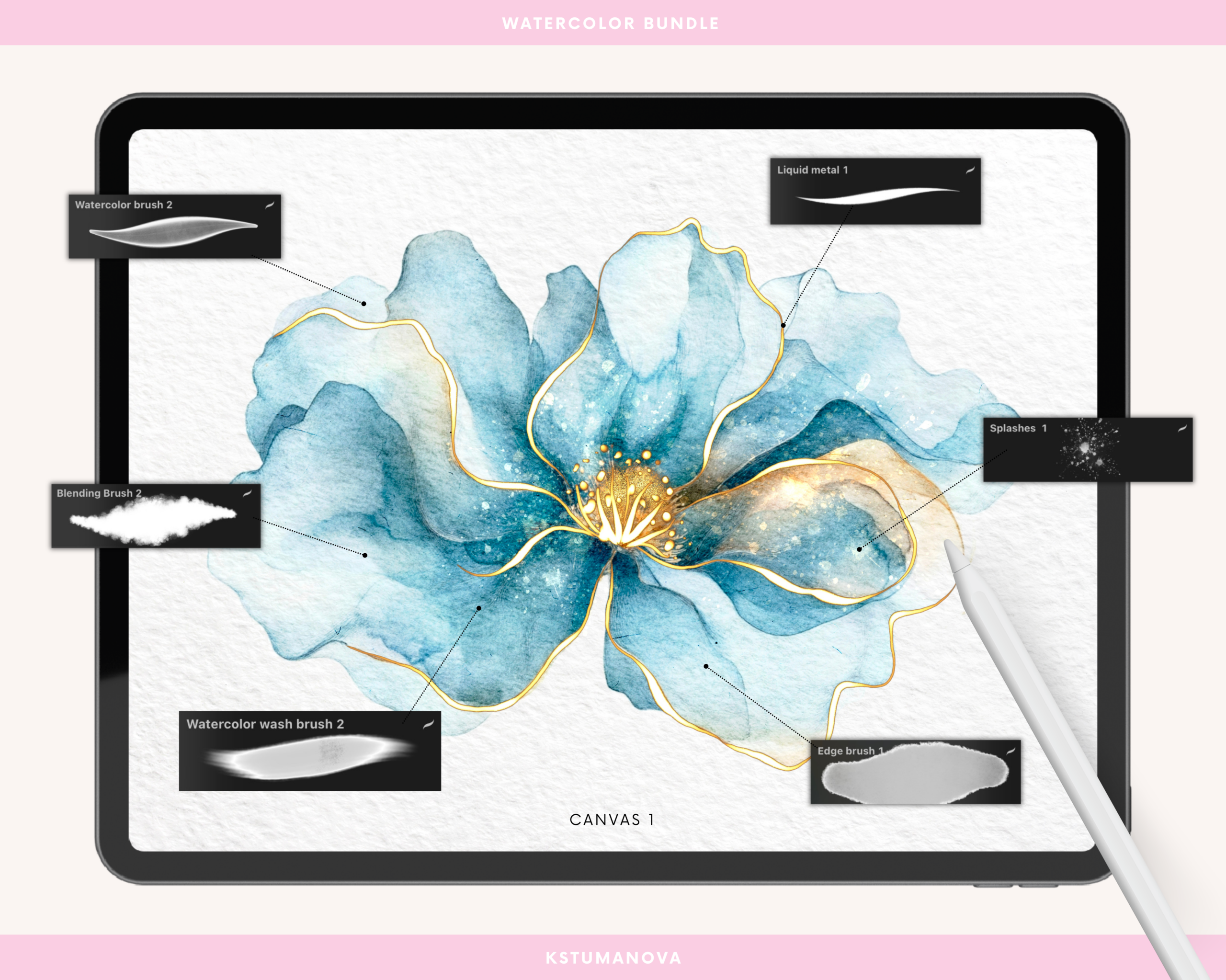 Procreate sparkly watercolor brushes. Procreate glitter, shimmer, pearl, foil, glow, liquid metallic brushes. Procreate paper texture canvas.